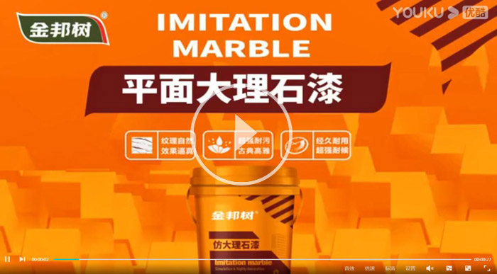 2D大理石漆 金邦樹2D大理石漆采用進(jìn)口彩色顆粒包裹成粒技術(shù),材料中同時(shí)融入不相溶的多色彩的高分子膠體共聚物顆粒,形成不規(guī)則花紋的仿進(jìn)口大理石紋路喝色彩,通過一次性噴涂,就可創(chuàng)造出幾乎和原石一樣的紋理效果,本產(chǎn)品漆乳液含量更高,高硬度、抗污性,超強(qiáng)超候性,能與真石材媲美。 Really stone paint 金邦樹平面2D大理石漆宣傳視頻 平面2D仿大理石漆施工工藝詳解